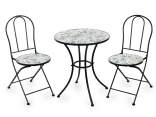 Garden table and 2 chairs in metal and decorated ceramic majolica, ideal for outdoor settings, shop windows and events