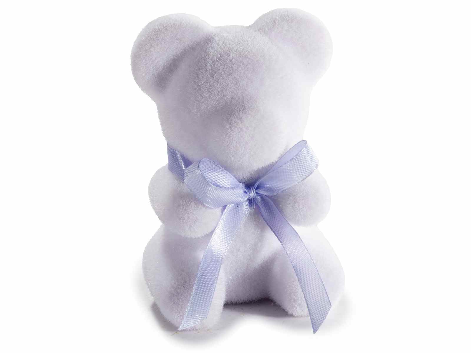 Teddy bears covered in soft lilac velvet with a decorative bow, also suitable for Valentine's Day