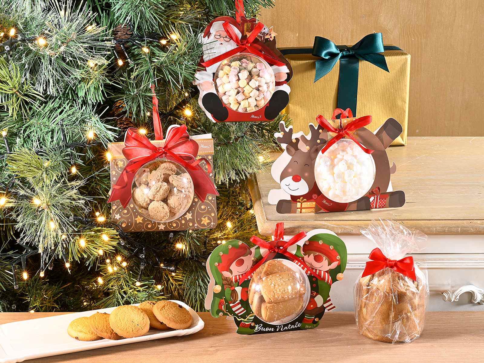 Transparent, food-safe Christmas bauble with a character-shaped gift box and a ribbon for hanging on the tree. Ideal for small gifts and Christmas treats.
