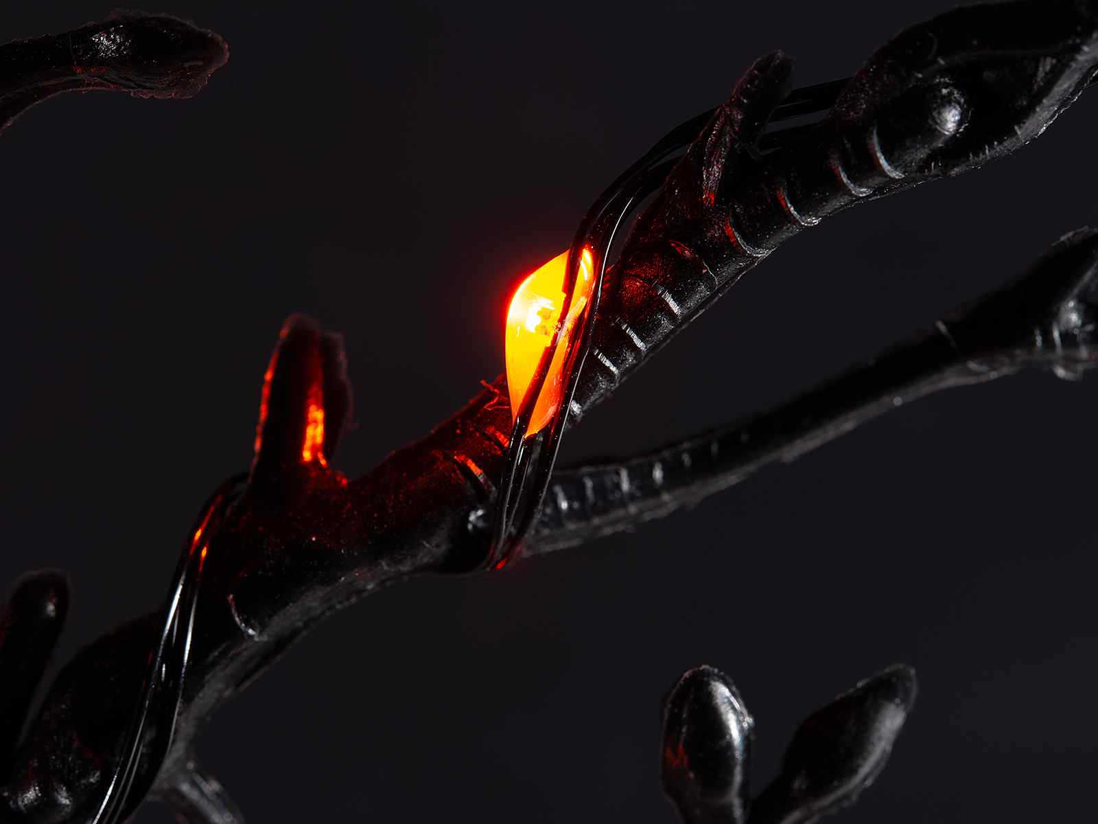 1.30 m tall Christmas tree lights with 250 orange LEDs and 50 branches. Suitable for Christmas shop windows and Halloween displays.