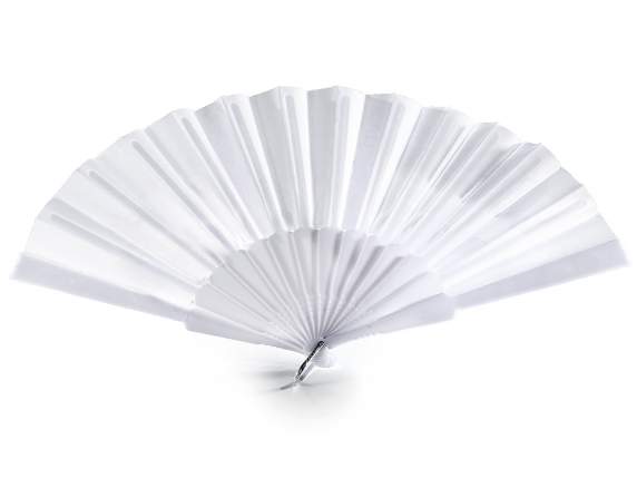 White plastic fans with hooks, ideal for summer but also for a large event at a low price: a fan per person without breaking the budget!