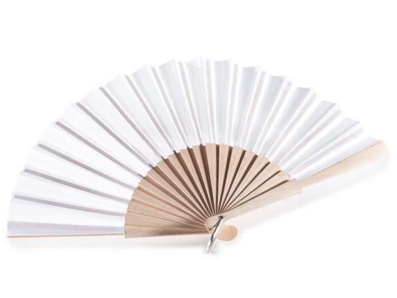 White wooden and fabric fans with hooks, ideal for summer but also for large events and ceremonies.