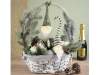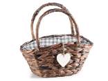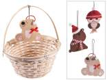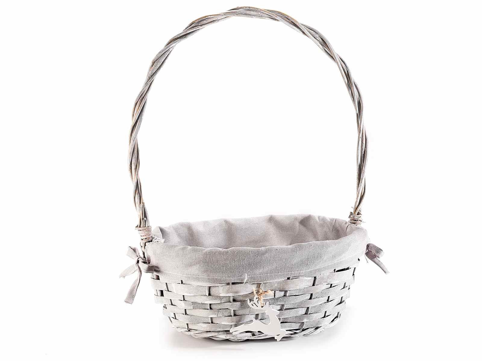 Wooden basket with rigid handle, reindeer, grey fabric bow