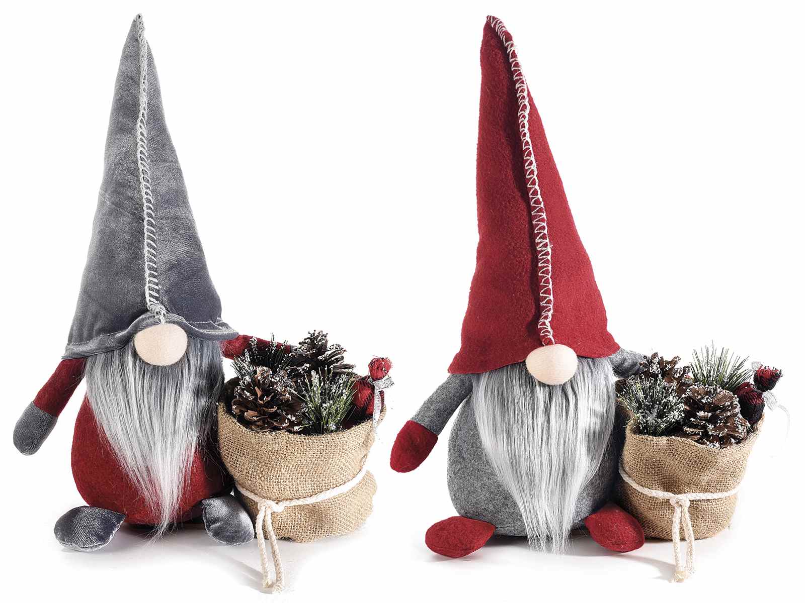 Woodland Gnome Decoration with Bag of Snowy Pine Cones