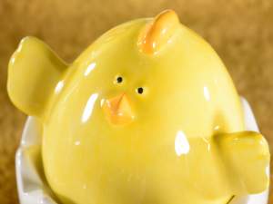 Easter chicks juggling with colored ceramic eggs to place cm 11,5 x 7,5 x 14,5 H.