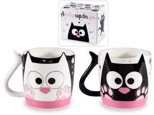 Hammered ceramic mugs 480 ml with animal print and embossed decoration on the handle Ø 9,5 cm x 9,5 H. Adatta al contatto diretto con gli alimenti