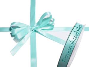 Satin double personalized turquoise ribbon mm 25 mm 25 H. Verrete contattati telefonicamente per il logo - Colori di stampa disponibili: Stampa lucida= oro e argento Stampa opaca= rosso, bianco, avorio, marrone e nero
