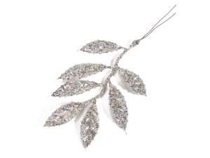 Decorative Christmas branches with champagne glitter filaments and berries cm 34 H (c/gambo 62). Bacca: Ø 2