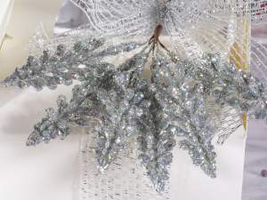 Pick pink fabric poinsettias with silver glitter Ø 30 cm x 32 H. Con petali modellabili