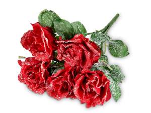 Artificial fabric roses pick with glitter border and berries cm 23 H (c/gambo 35). Rosa: Ø 10