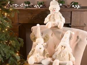 Long legged Christmas elves made of cloth sitting with package cm 14x6x20 H (capp.esteso). Con gambe: 31 H