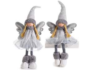 Decorative Christmas angels in fabric and eco-fur with long legs and a shapeable hat cm 18x11x41 H (capp.esteso). Con gambe: 62 H - Con cappello modellabile