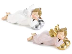 Christmas angels in resin with glitter and gold and silver details cm 16,5 x 8,5 x 7,5 H.