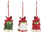 Ceramic Christmas bells with Nativity scene decoration and bow