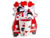 Valentine's Day porcelain mugs with a loving couple decoration in a shaped gift box with a bow.