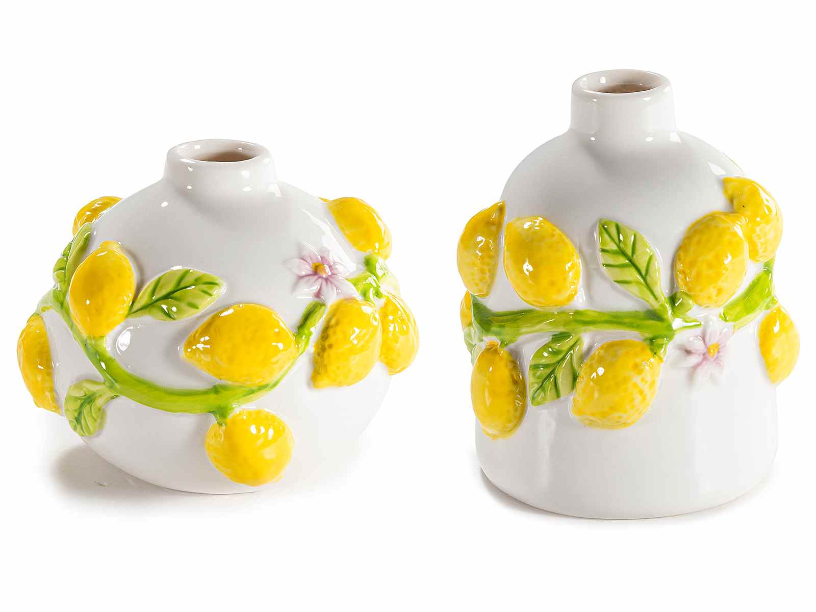 Porcelain jars with embossed lemon decorations