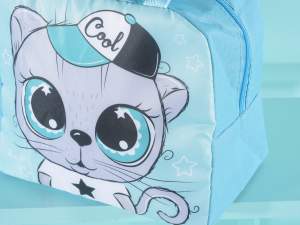 Thermal bags / lunch bags with handles and zip, kitten print cm22x13,5x19H (c/manici30). Capienza: 5 L