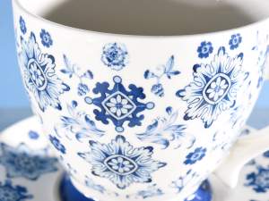 Tasses en porcelaine avec soucoupe assortie à décor en majolique bleue dans un coffret cadeau