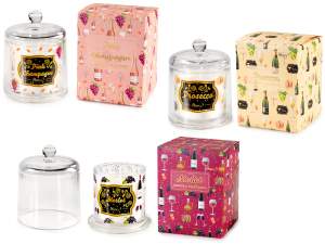 Bougies parfumées sous cloche en verre imprimé vin dans un coffret cadeau
