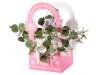 Paniers à fleurs en papier coloré avec anses, décorés de papillons et de fleurs, et portant une dédicace.