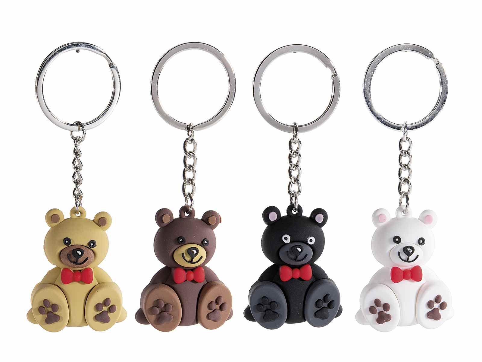 Porte-clés en silicone ours en peluche coloré avec papillon