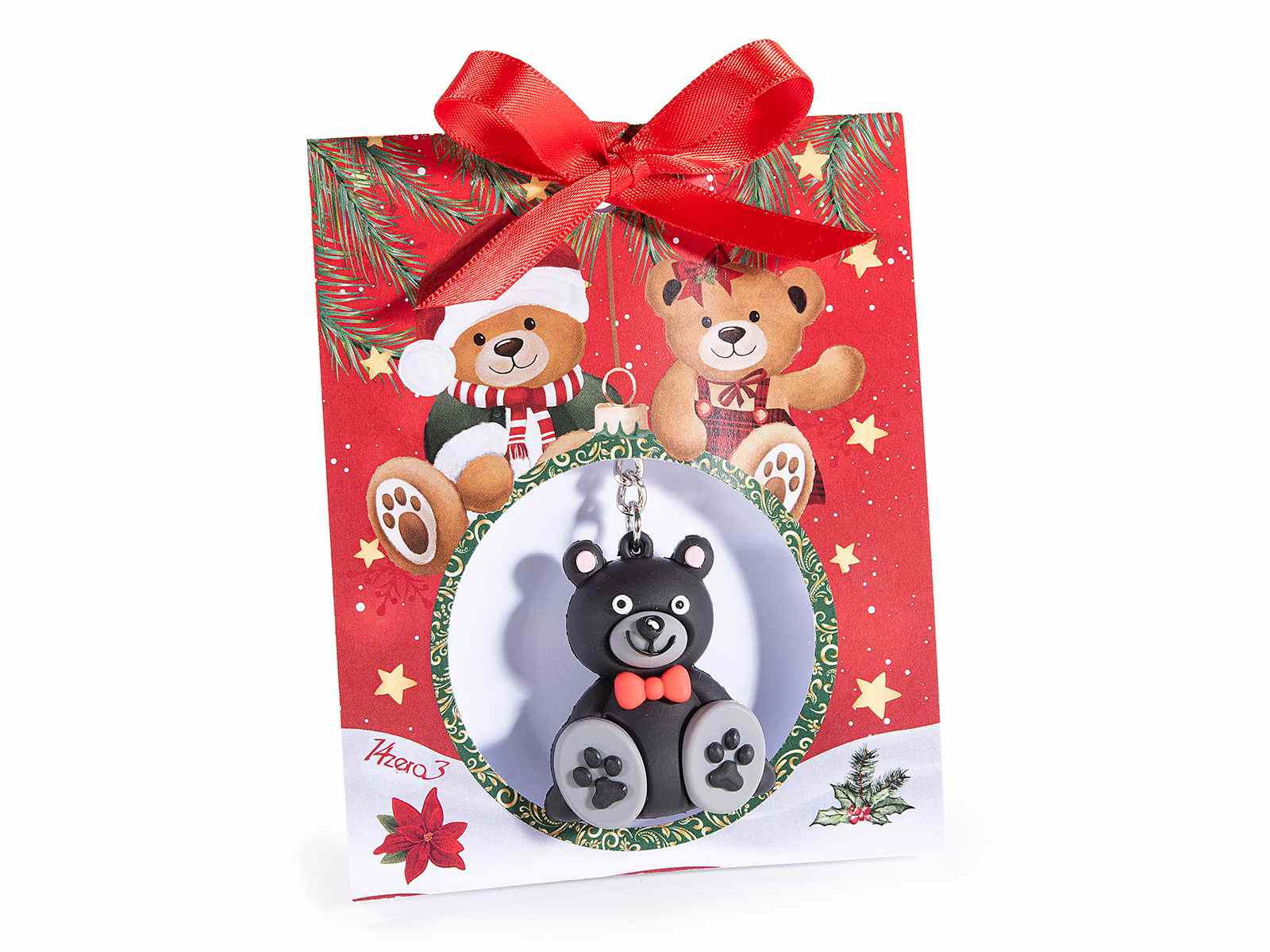 Porte-clés en silicone coloré ours en peluche avec nœud papillon rouge, avec une seule carte et un présentoir de 24 pièces