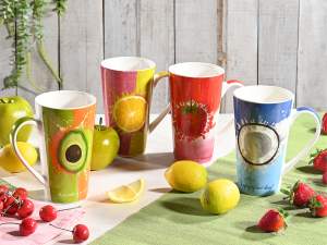Tasses en porcelaine décorées d'un imprimé de fruits d'été