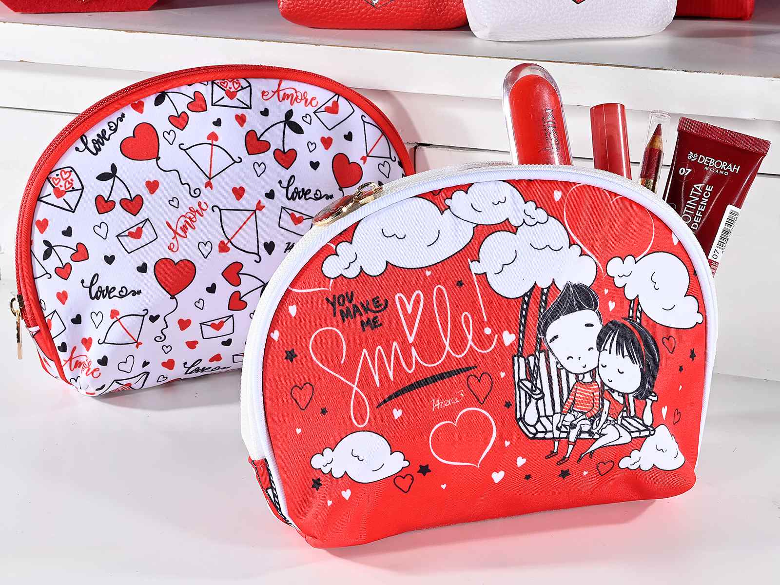 Pochette en tissu Saint Valentin avec imprimé love et fermeture zip