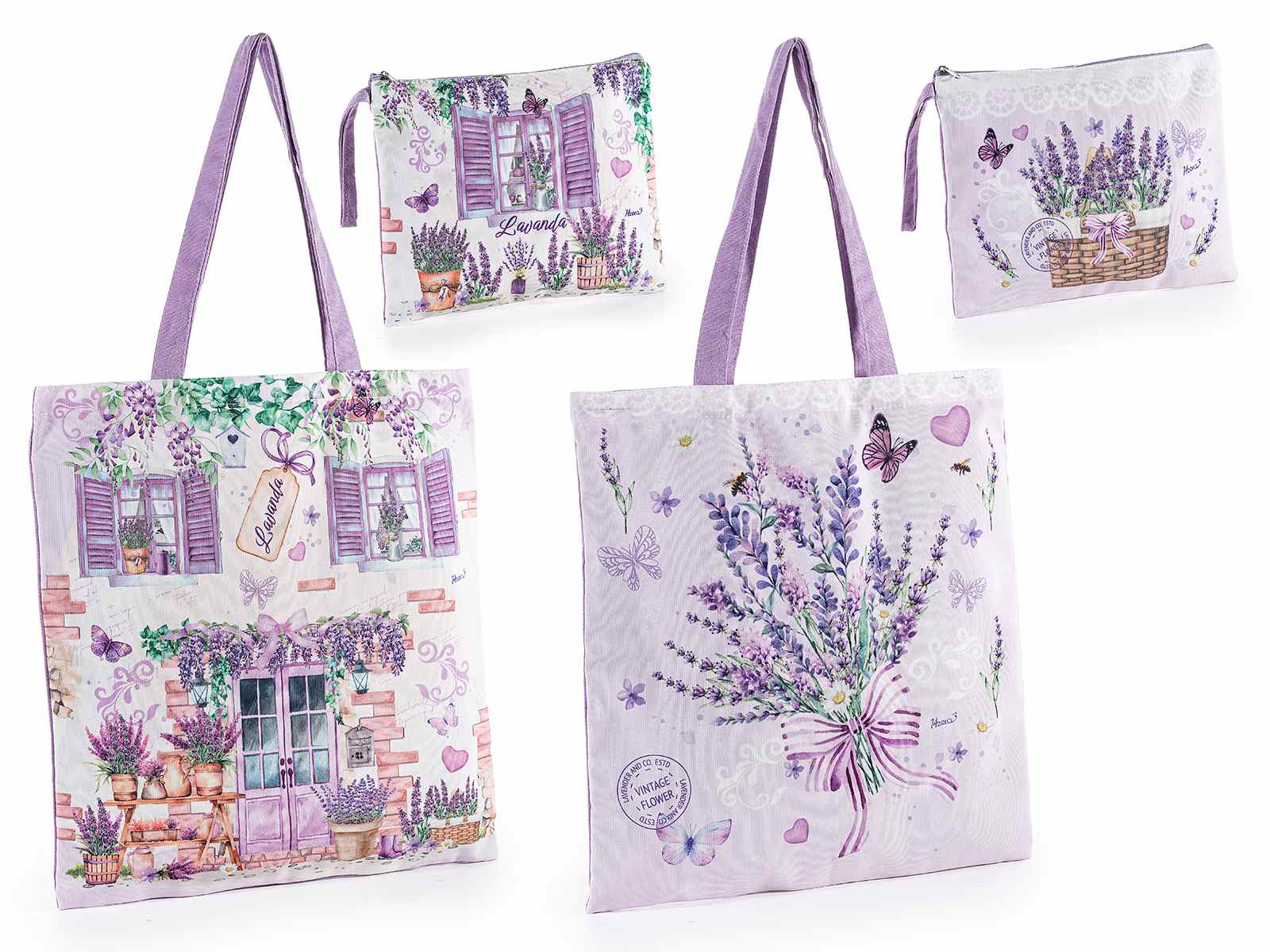 Ensemble de sacs et pochettes à fermeture éclair en tissu imprimé lavande