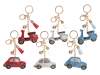 Porte-clés voiture et moto avec strass, pompon et pendentifs