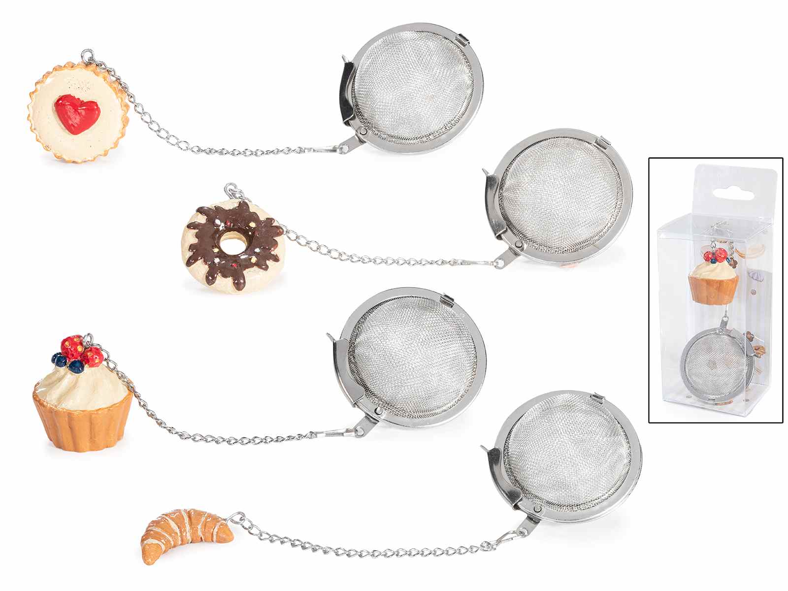 Infuseurs en acier inoxydable de qualité alimentaire avec friandises en résine dans un coffret cadeau