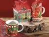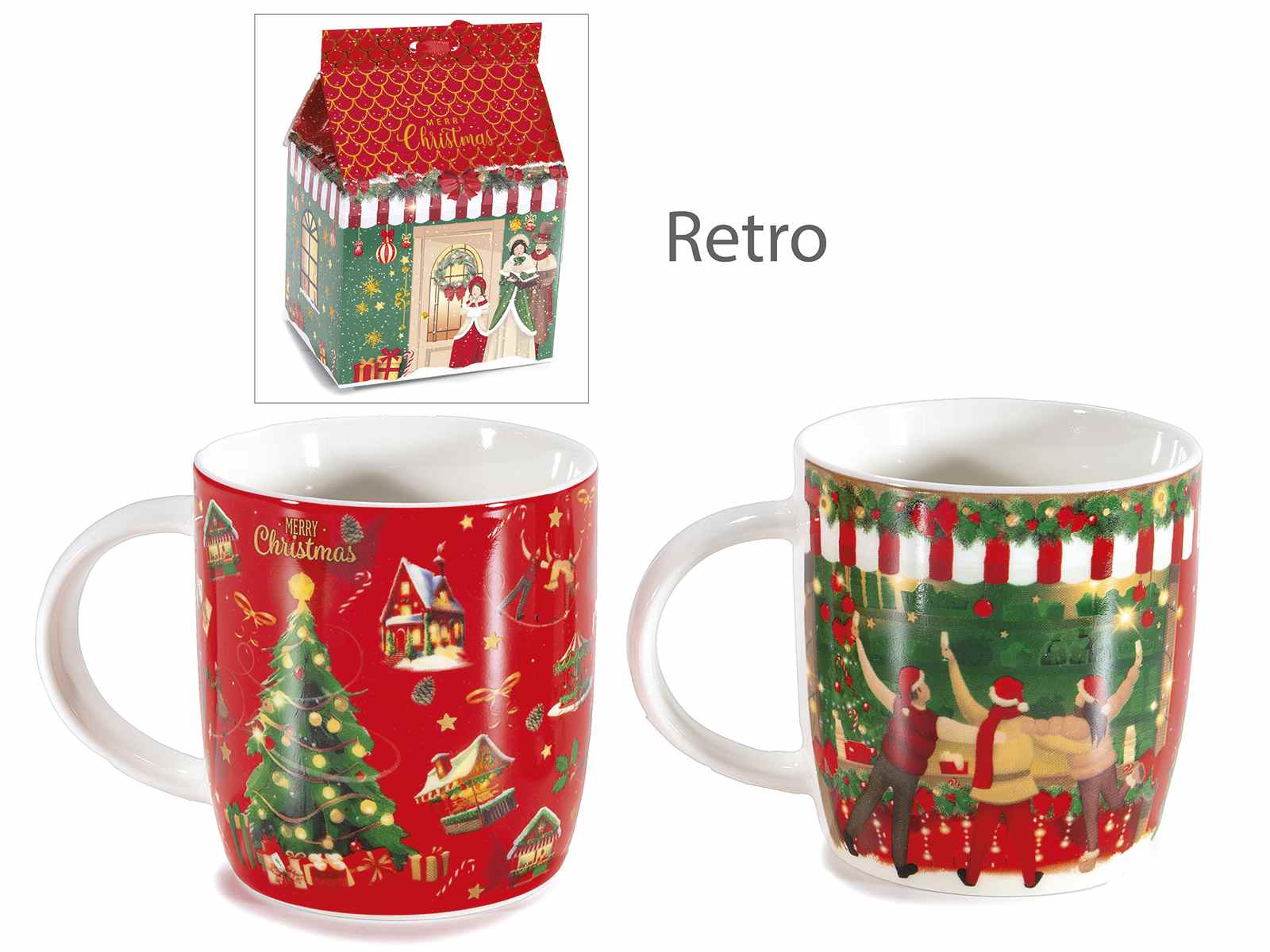 Tasses cadeaux de Noël en porcelaine avec décorations thématiques et emballage en forme de maison avec nœud