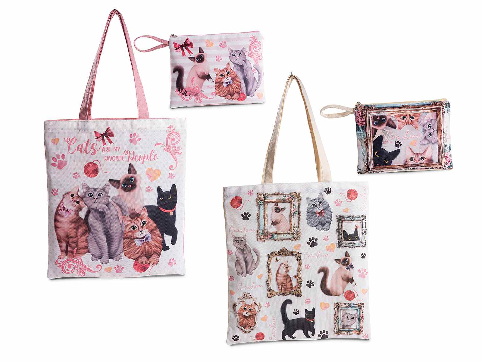 Ensemble de sacs en tissu et pochette assortie avec imprimé chat et écriture thématique