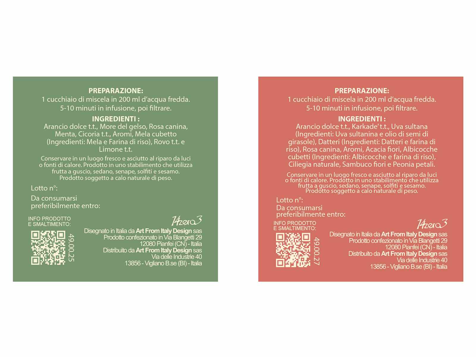 Gobelets en verre à thème fruité avec infusion pour tisane chaude et froide, saveur Mojito et Black Cherry Variegato, en sachets individuels de 40 grammes