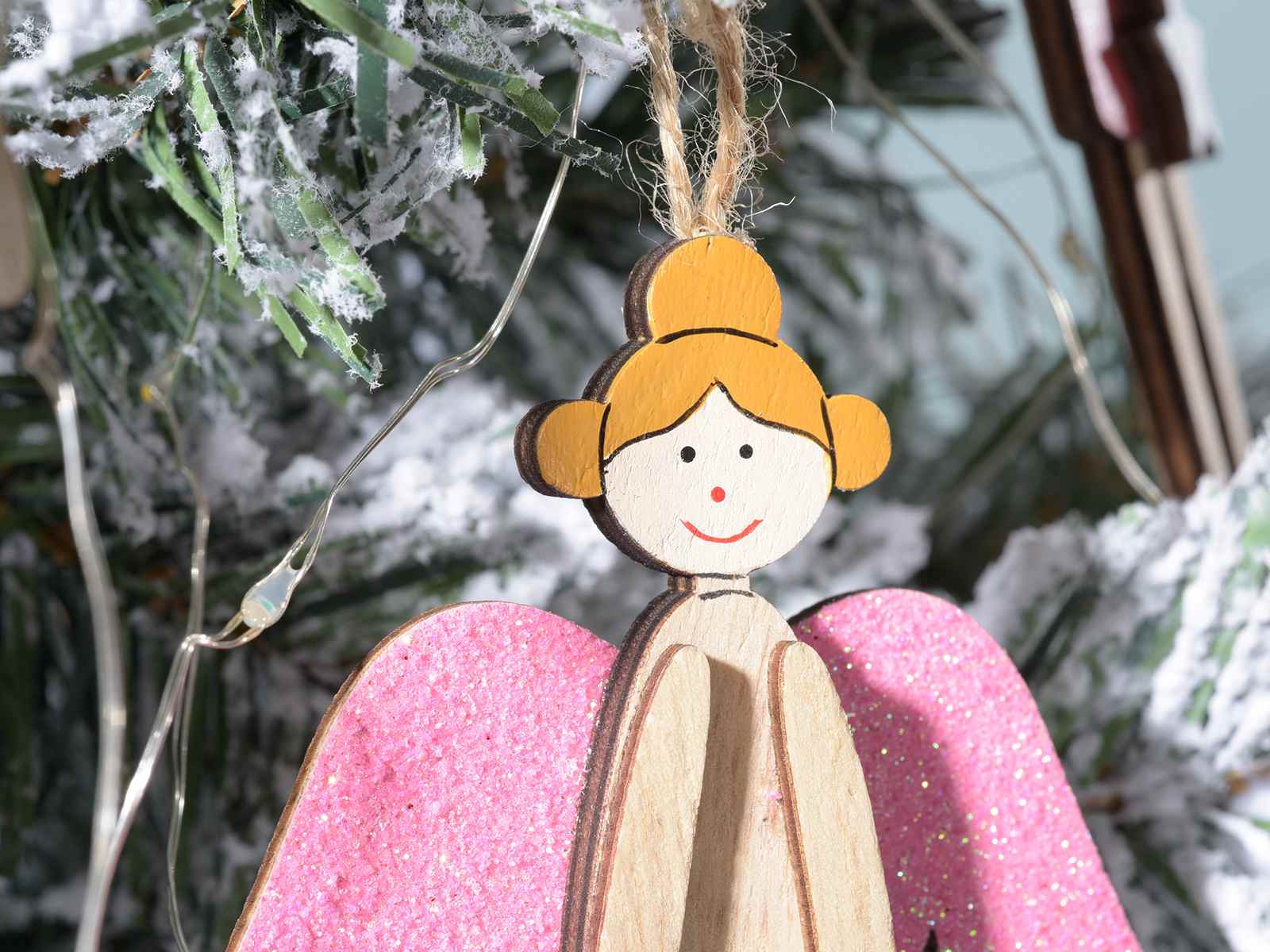 Anges de Noël en bois à suspendre avec des ailes scintillantes