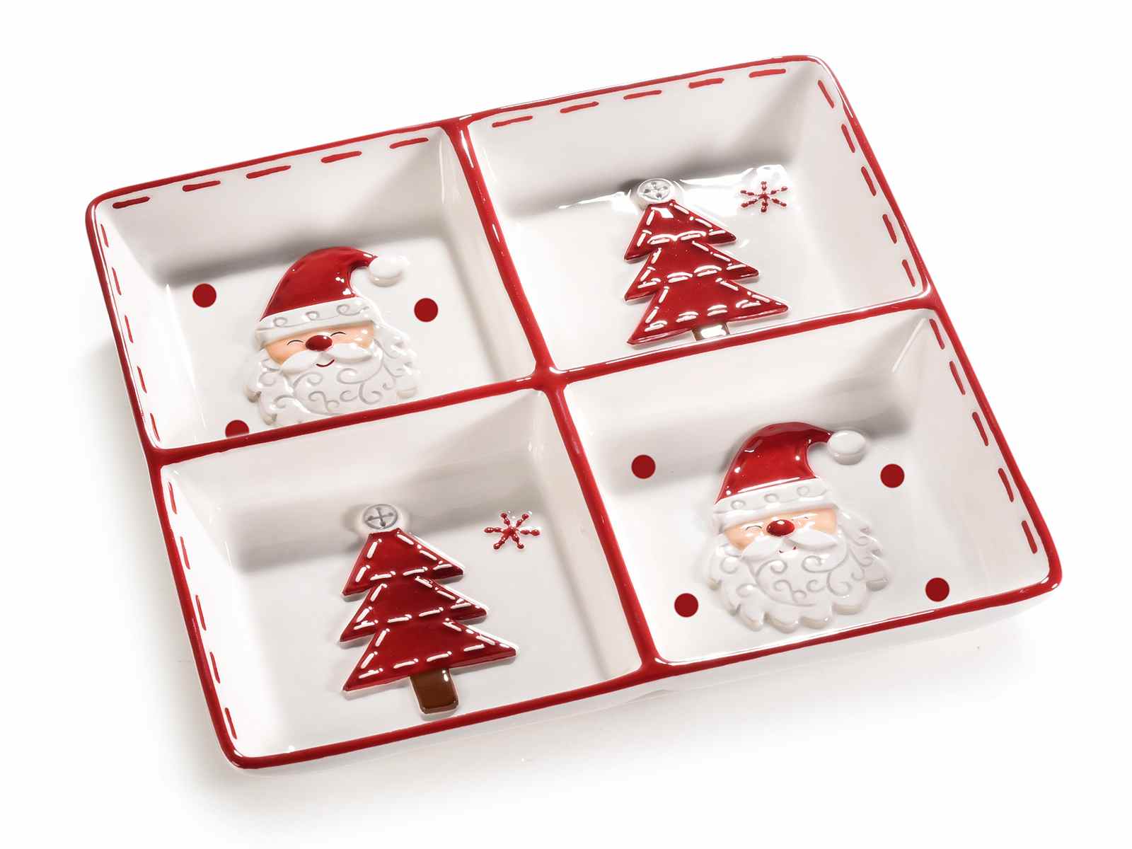 Assiettes plateaux 4 compartiments en céramique avec Père Noël et sapin