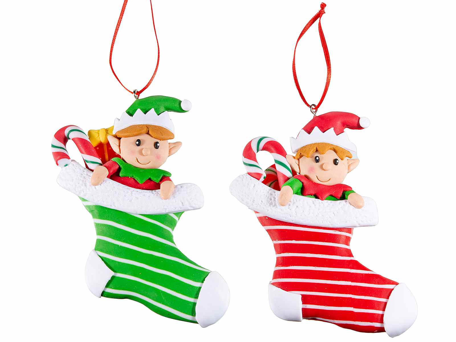 Bas de Noël lutin en pâte de résine à suspendre