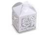 Boîte à dragées en papier pailleté blanc,sculptures florales