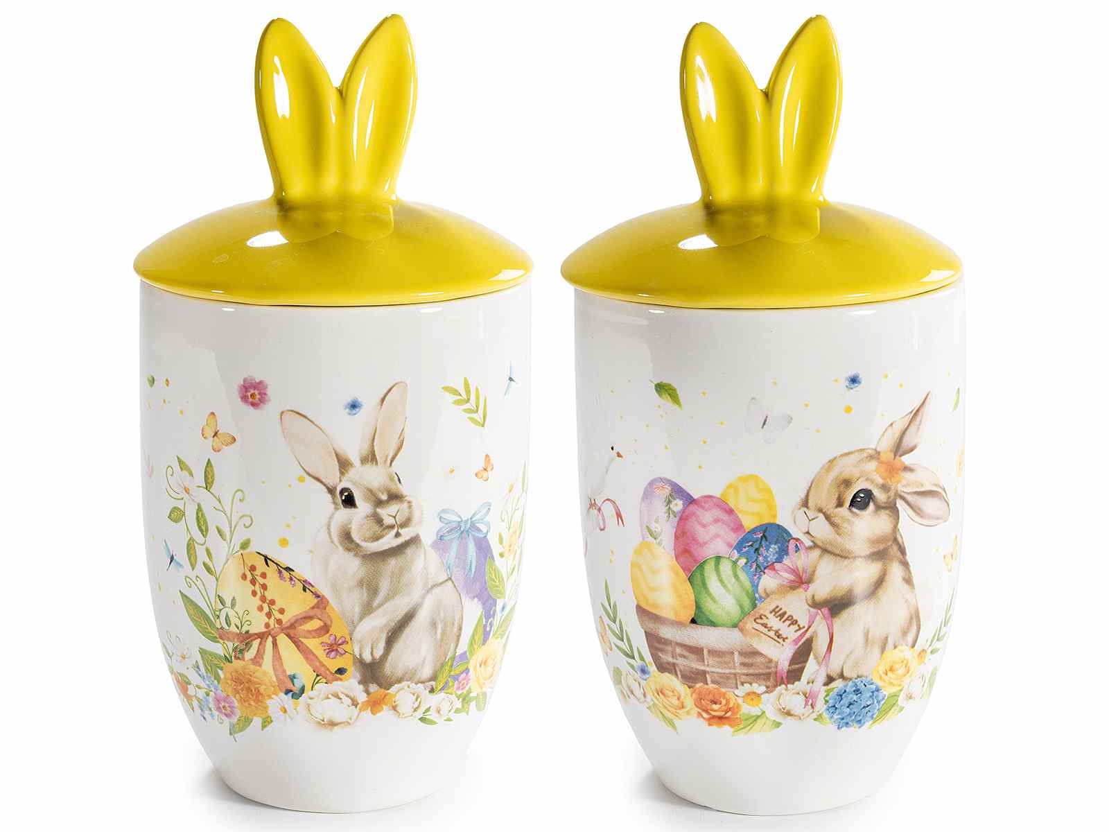 Bocaux à biscuits/gâteaux en céramique alimentaire avec couvercles en forme d'oreilles et motif lapin de Pâques