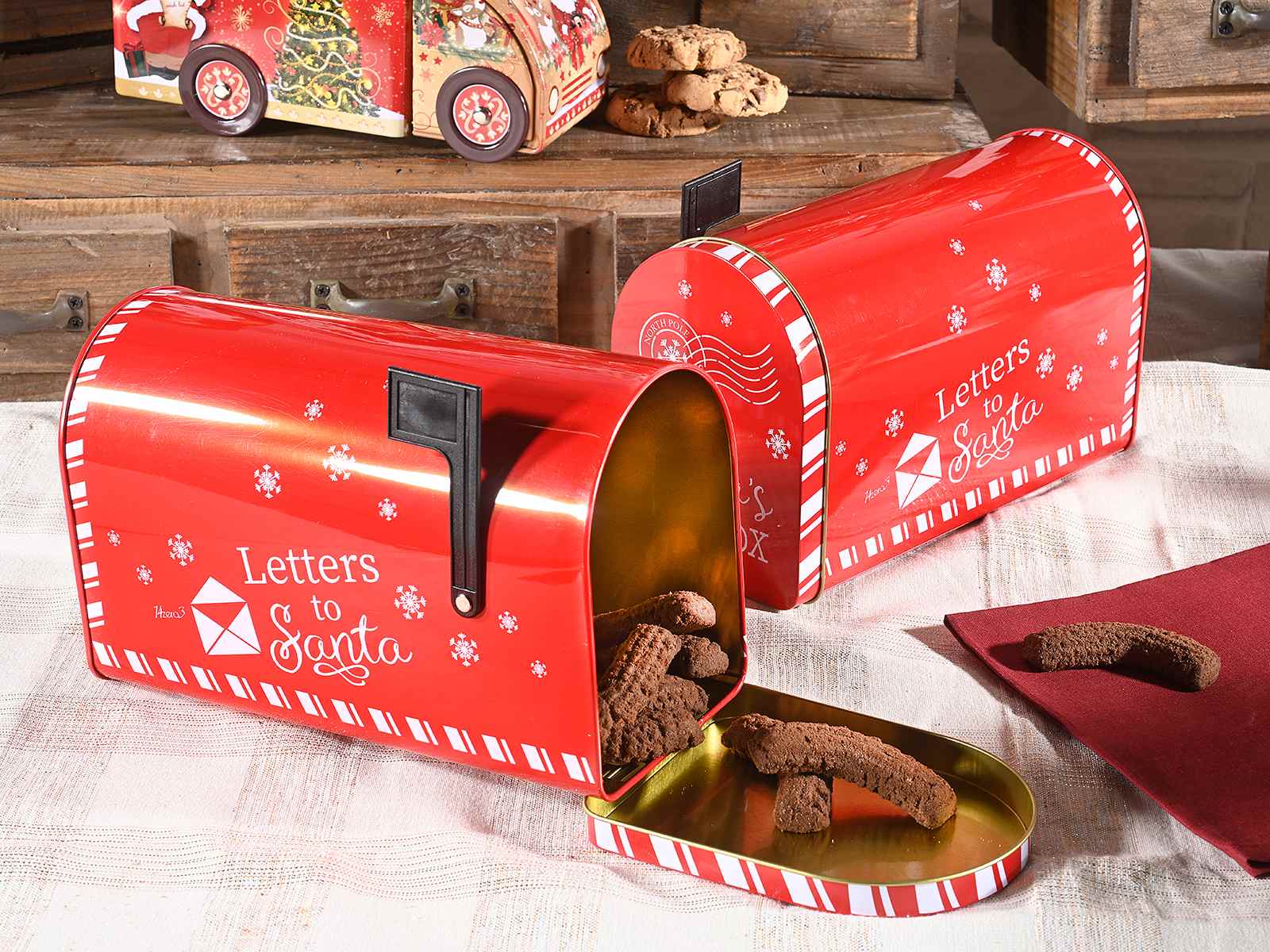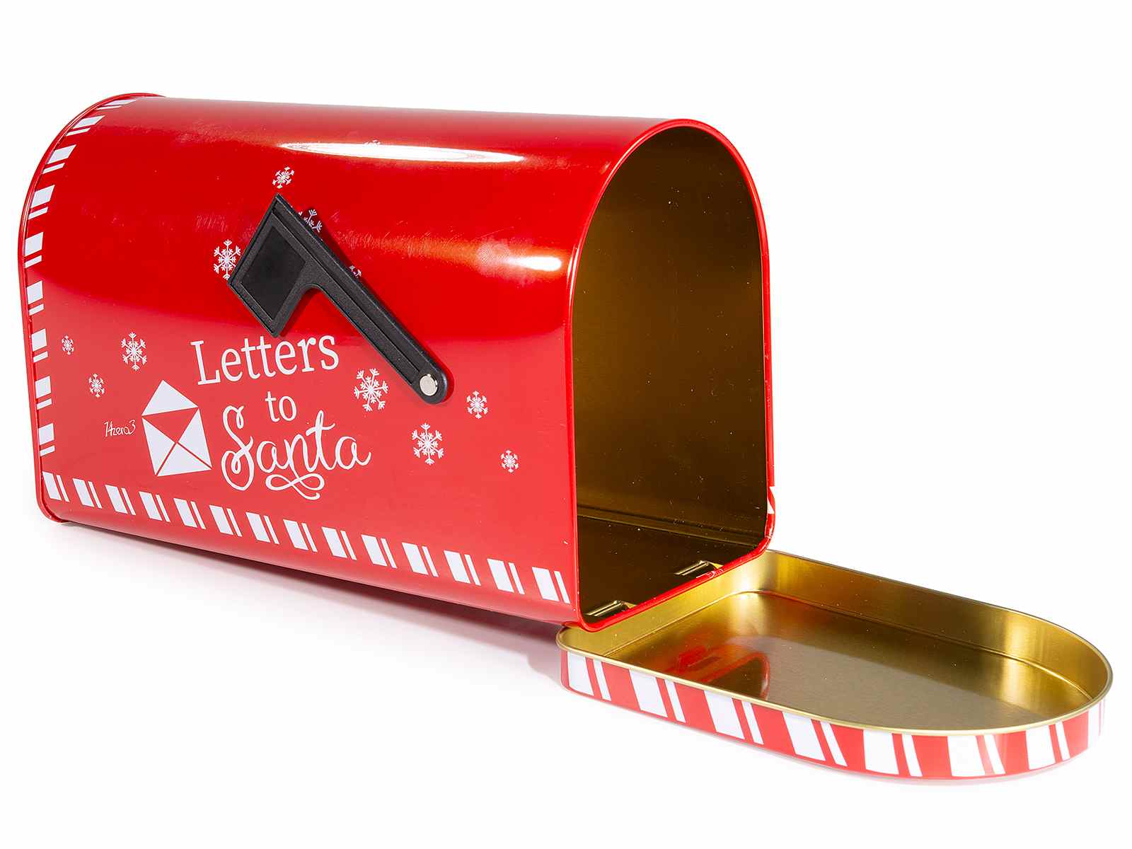 Boîtes aux lettres de Noël / Boîtes aux lettres du Père Noël en métal, adaptées au contact alimentaire. Idéales pour emballer des produits artisanaux, des aliments et des friandises de Noël, elles sont parfaites comme idée cadeau.