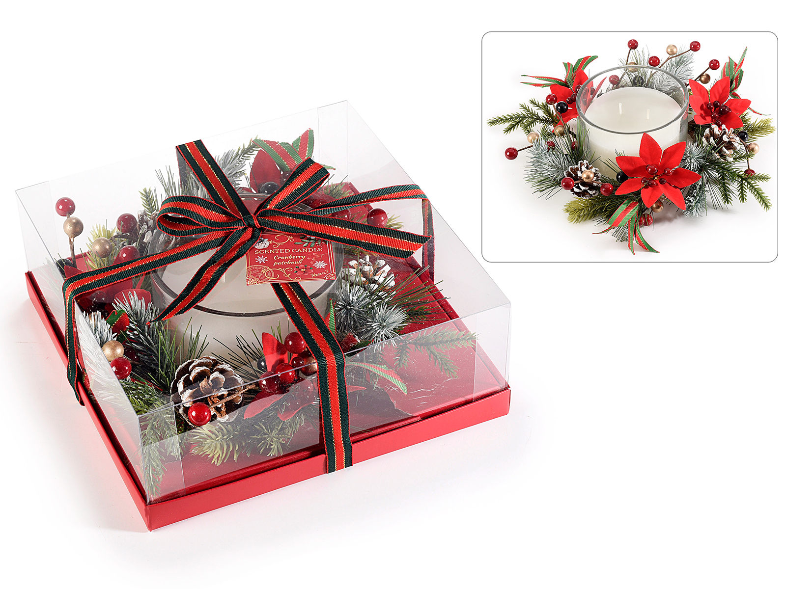 Bougie avec décoration de Noël et inscription Joyeux Noël |