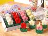 Bougies colorées en forme de fleur, présentées dans un présentoir de 12 pièces