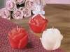 Bougies individuelles en forme de bouton de rose rouge et blanc, ornées d'un ruban, pour la Saint-Valentin et la fête des mères.