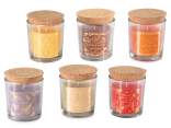 Bougies parfumées dans un pot en verre avec bouchon en liège