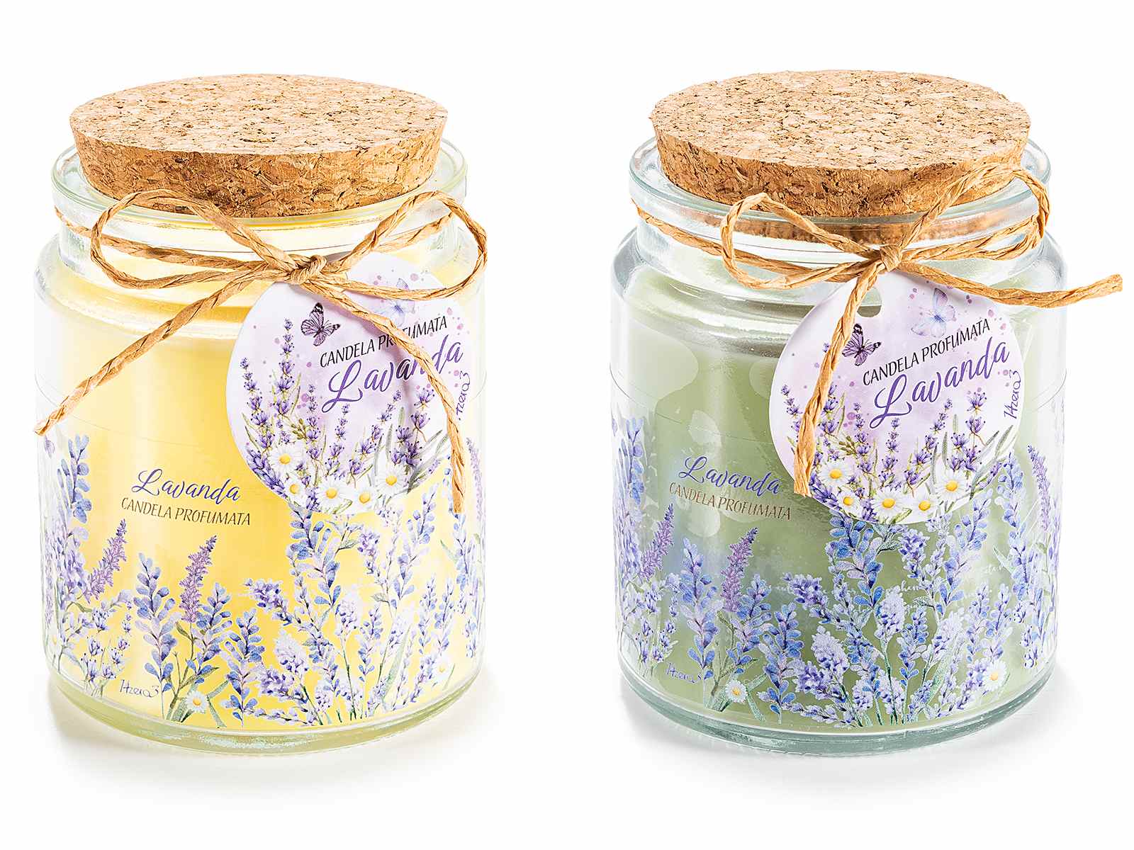 Bougie parfumée dans un bocal en verre décoré de lavande |