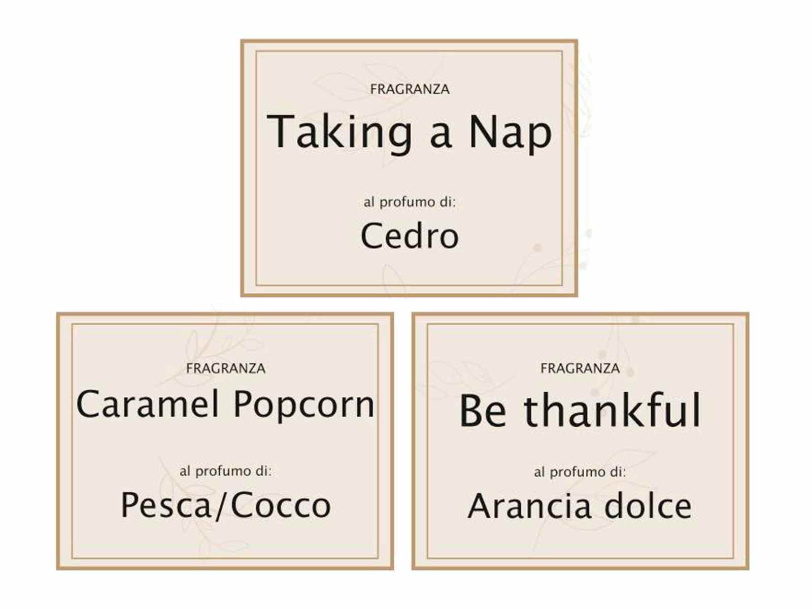 Parfums: Popcorn au caramel, soyez reconnaissant, faites une sieste