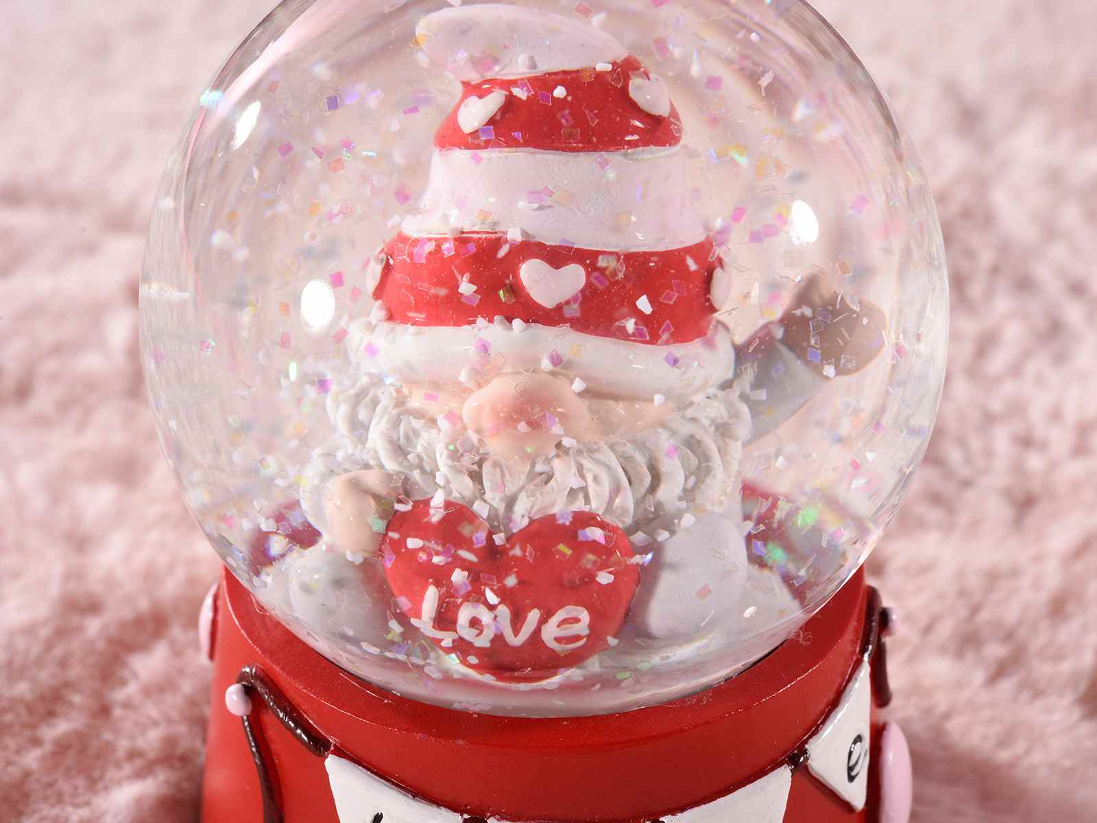 Boules à neige pailletées, en verre avec des gnomes amoureux et une base en résine, également parfaites pour la Saint-Valentin