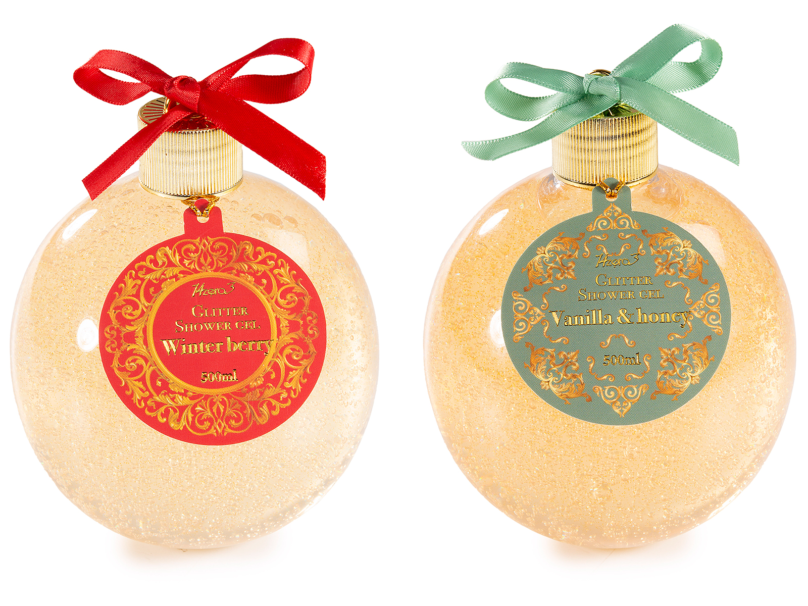 Boule de Noël 500 ml avec gel douche pailleté et noeud