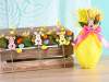 Emballages de Pâques / scellage de paquets pour emballages contenant des œufs colorés et des baies, avec un lapin décoratif en bois