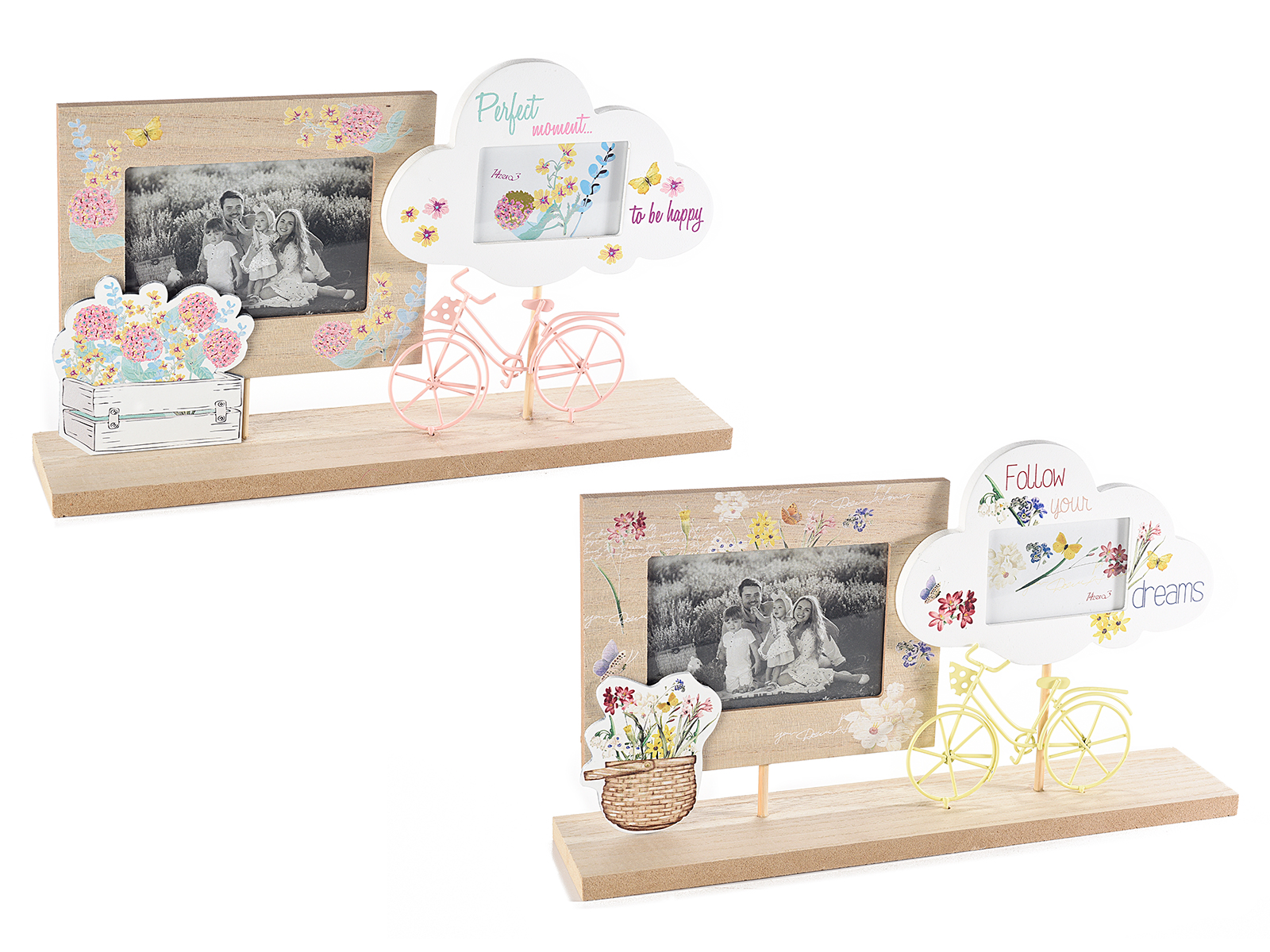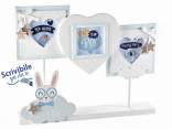 Cadre photo double en bois avec décoration en métal à poser